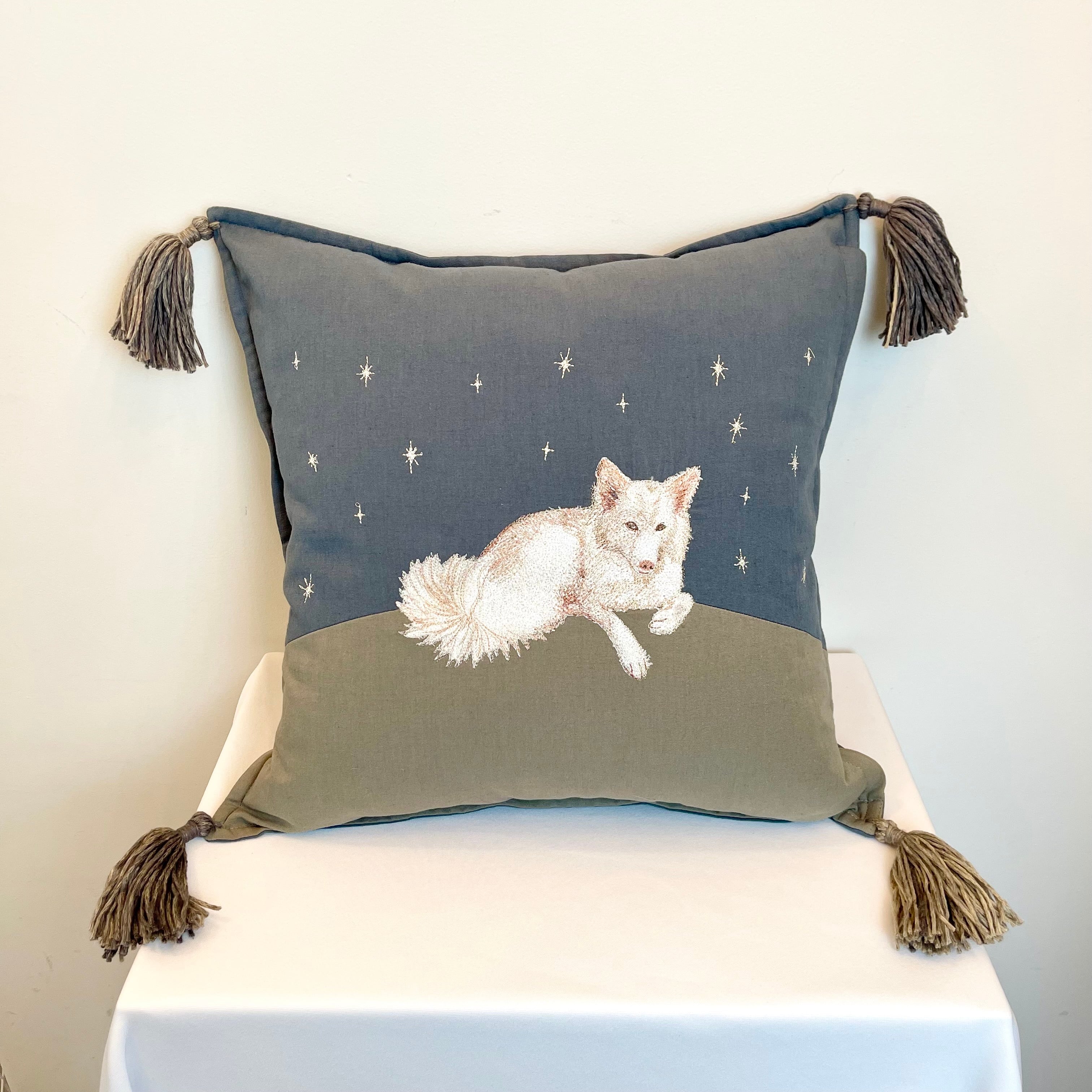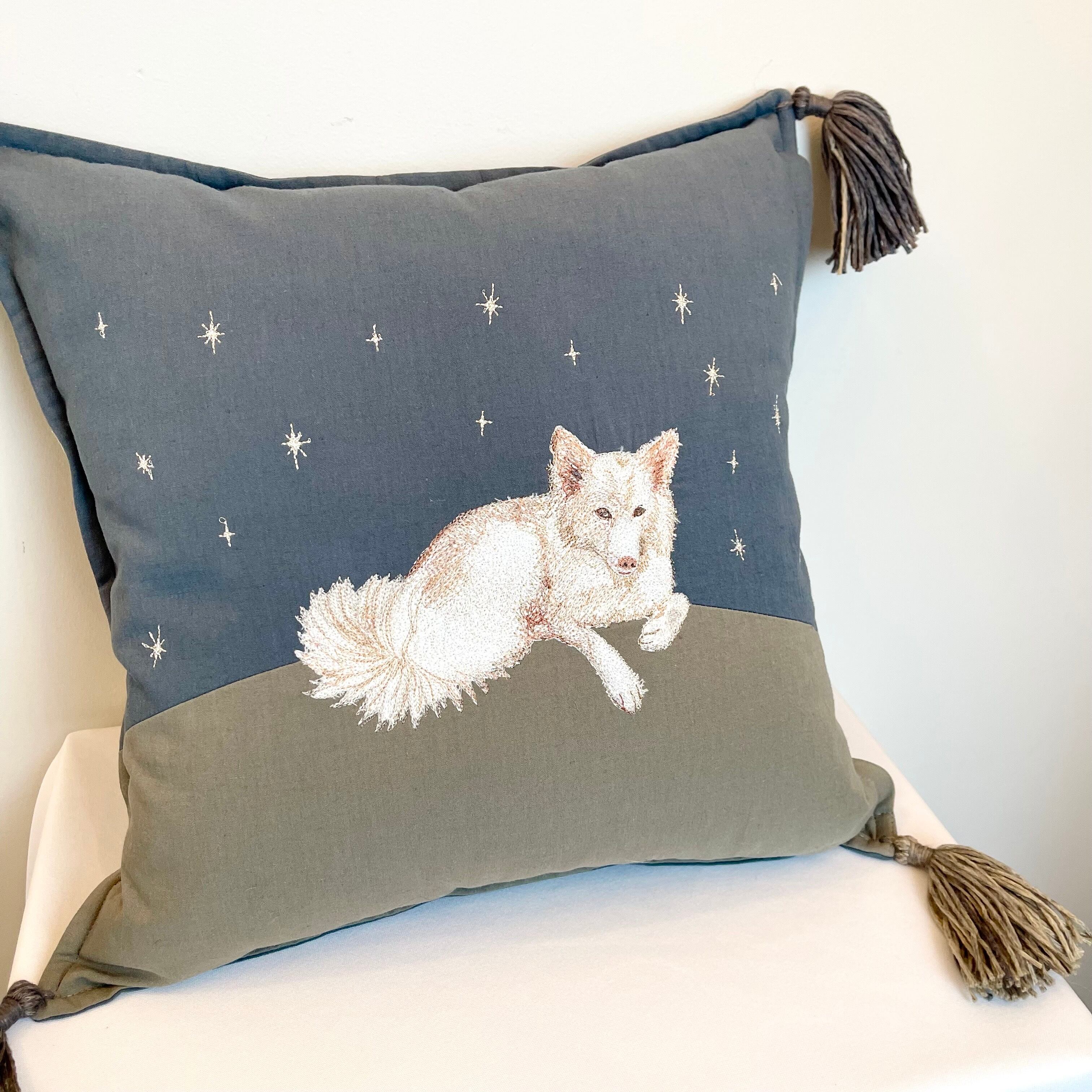 “うちの子刺繍”のクッションカバーです